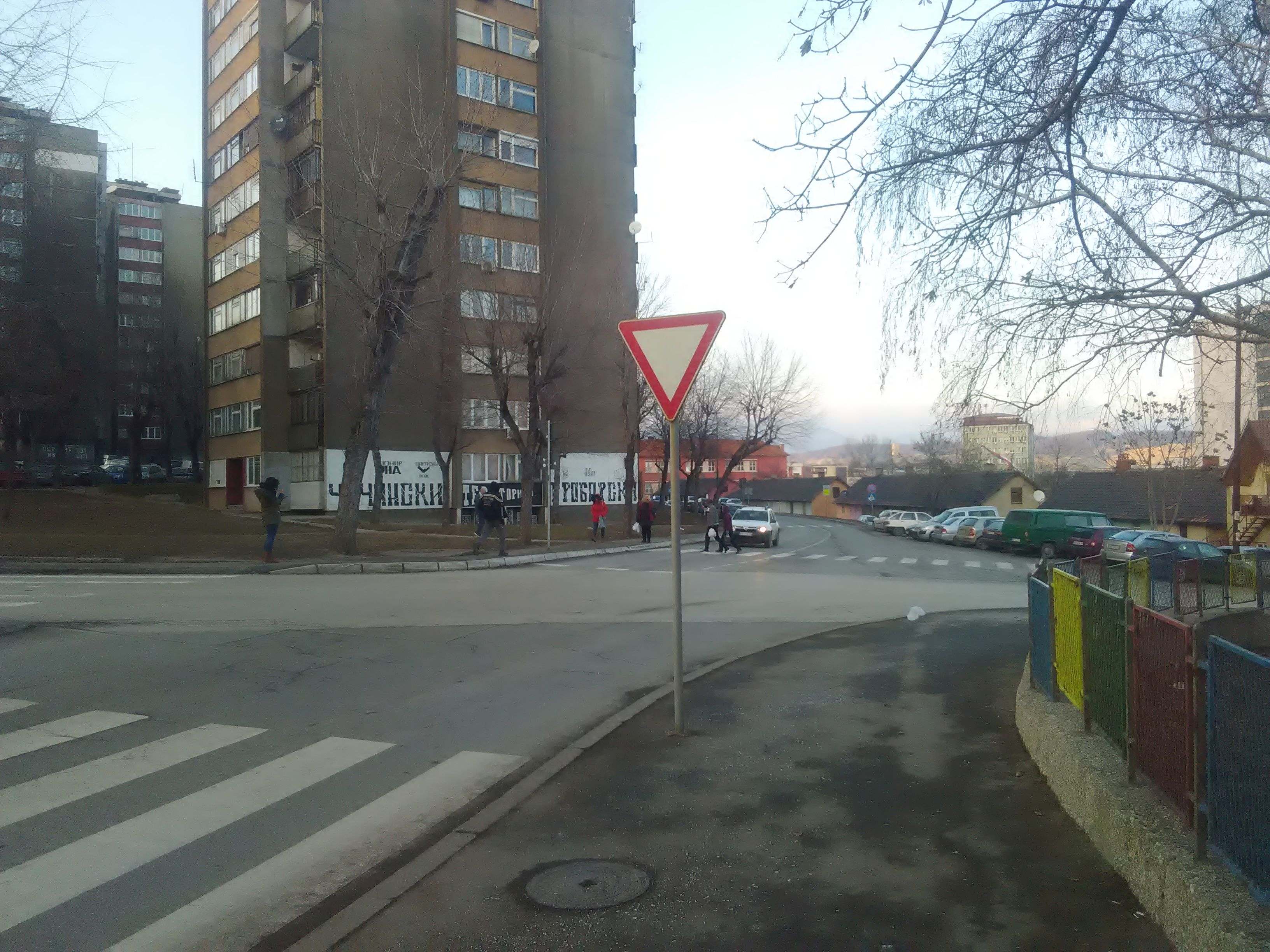Raskrsnica koja je zbog svoje geometrije nepregledna, potrebno je saobraćajno ogledalo |